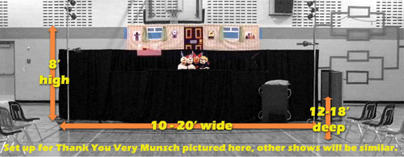 time. We travel with We will call the week of your booking and will arrive on site 1 hour prior to show time, students may be brought in 15 minutes prior to show time. We strive to begin every show on time for your convenience! We will require 1/2 hour to pack up after our 1 hour show. This means we will be in your space for a total of 2.5 hours for a 1 hour show. More information call 306.683-9460 |